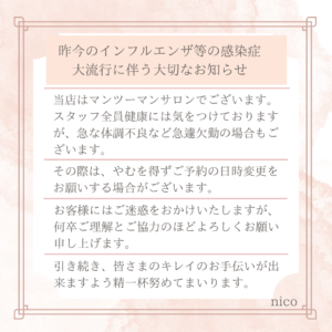 - 【昨今のインフルエンザ等の感染症大流行に伴う大切なお知らせ】