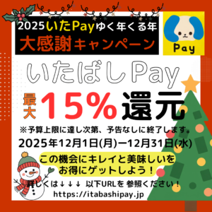 - 【2025 いたPayゆく年くる年大感謝キャンペーン】開催中